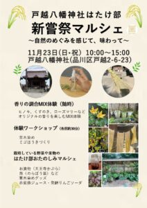 新嘗祭当日戸越八幡神社はたけ部ではマルシェを開催しています。
