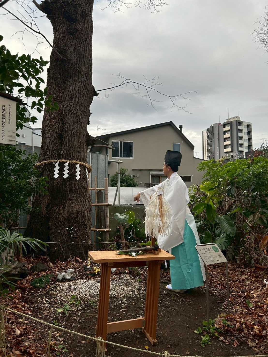 ケンポナシさんへと本殿横のご神木へしめ縄を奉納しました。