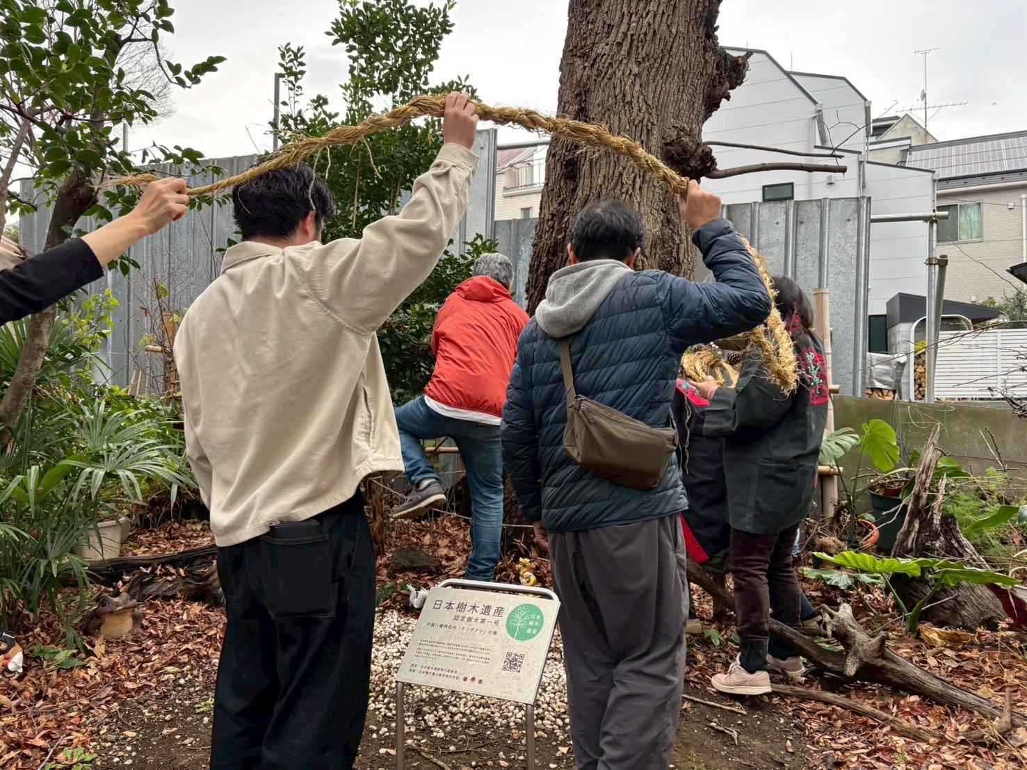 - しめ縄をご神木へ